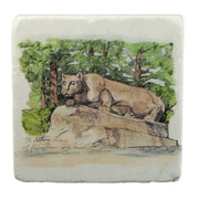 Box of 2 stone coaster with sketch image of the Nittany Lion statue.
