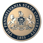 - Medallion of the university seal with navy enamel accents set into double navy and gold museum-quality matting with the school name embossed in gold