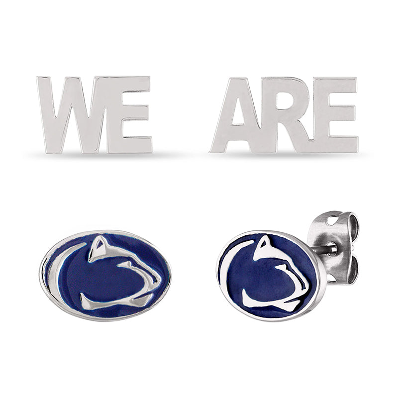 - Gear up for the game with these beautifully designed and combined Pennsylvania State University earring set, featuring Nittany Lion stud earrings and cute, dainty WE ARE stud earrings.